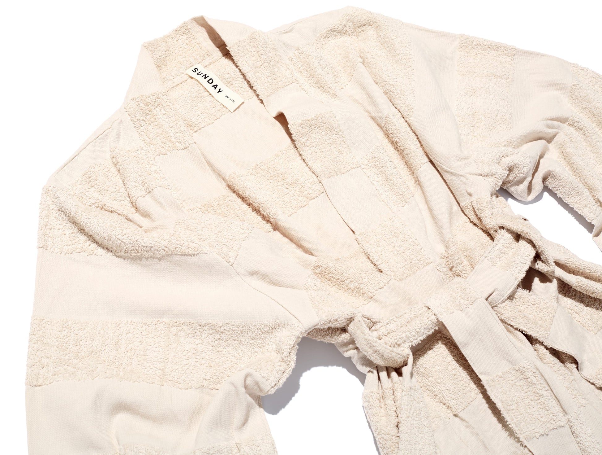 Comfortable robe for simple living. Designed for effective drying and lightweight convenience, made from the same ombre panelled weave as our 100% cotton beach towels.