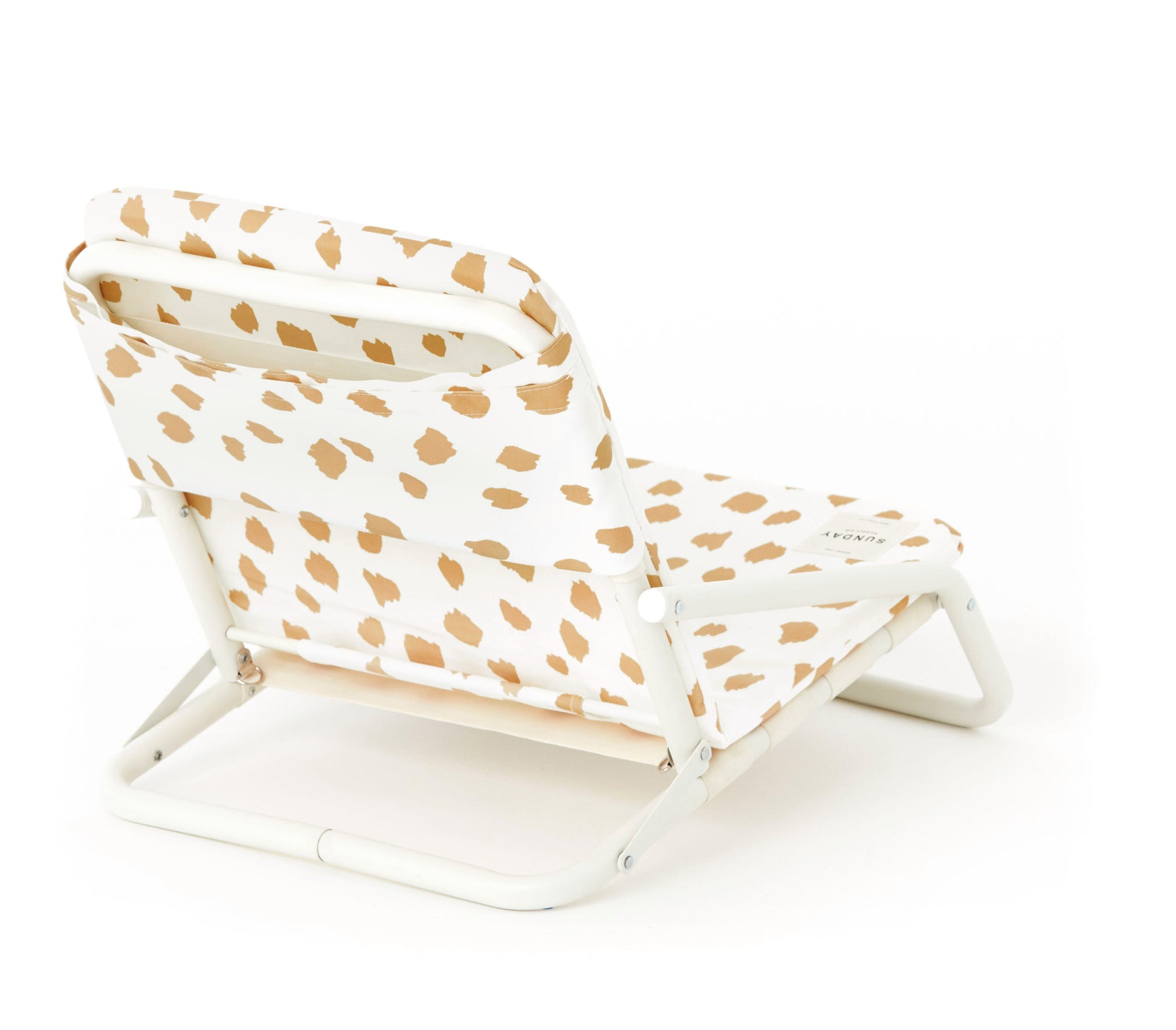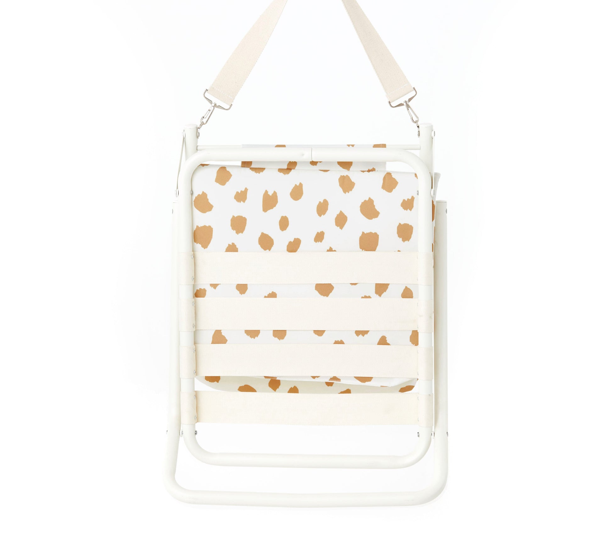 Designed for comfort and style, this lightweight beach chair features a custom-designed, premium cushion slip in our Golden Sands signature print, removable carry strap and convenient storage pocket.