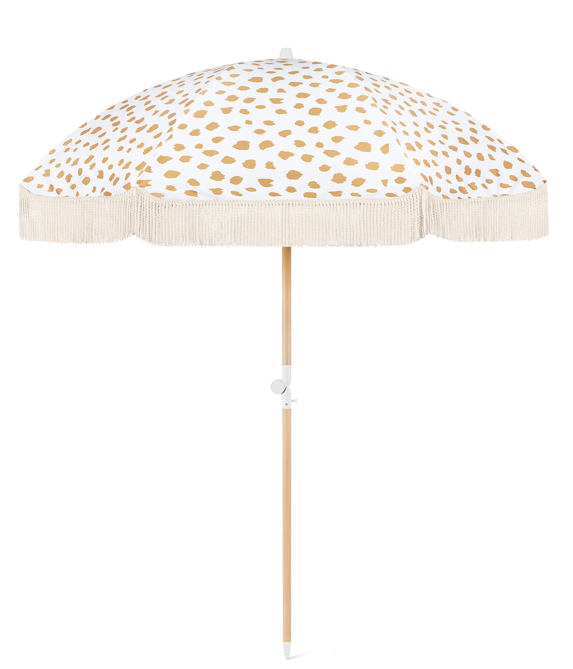 A refreshing new colourway now available in our signature pattern. Featuring a sunny dot and light colours, this unique and premium umbrella is ready for any day at the beach, pool or garden. The Golden Sands is an exclusive design that is the perfect addition too long summer days under the best shade.