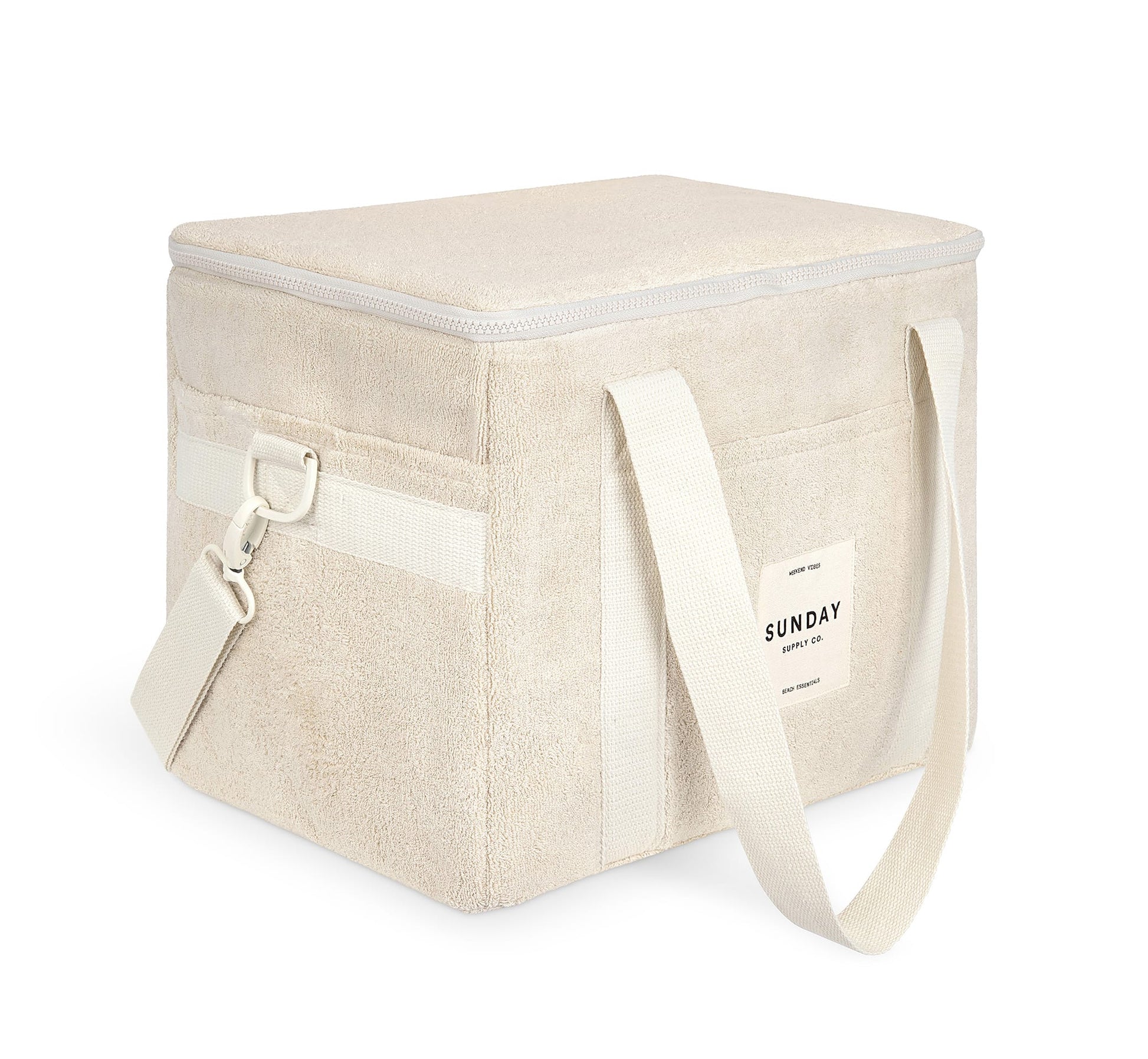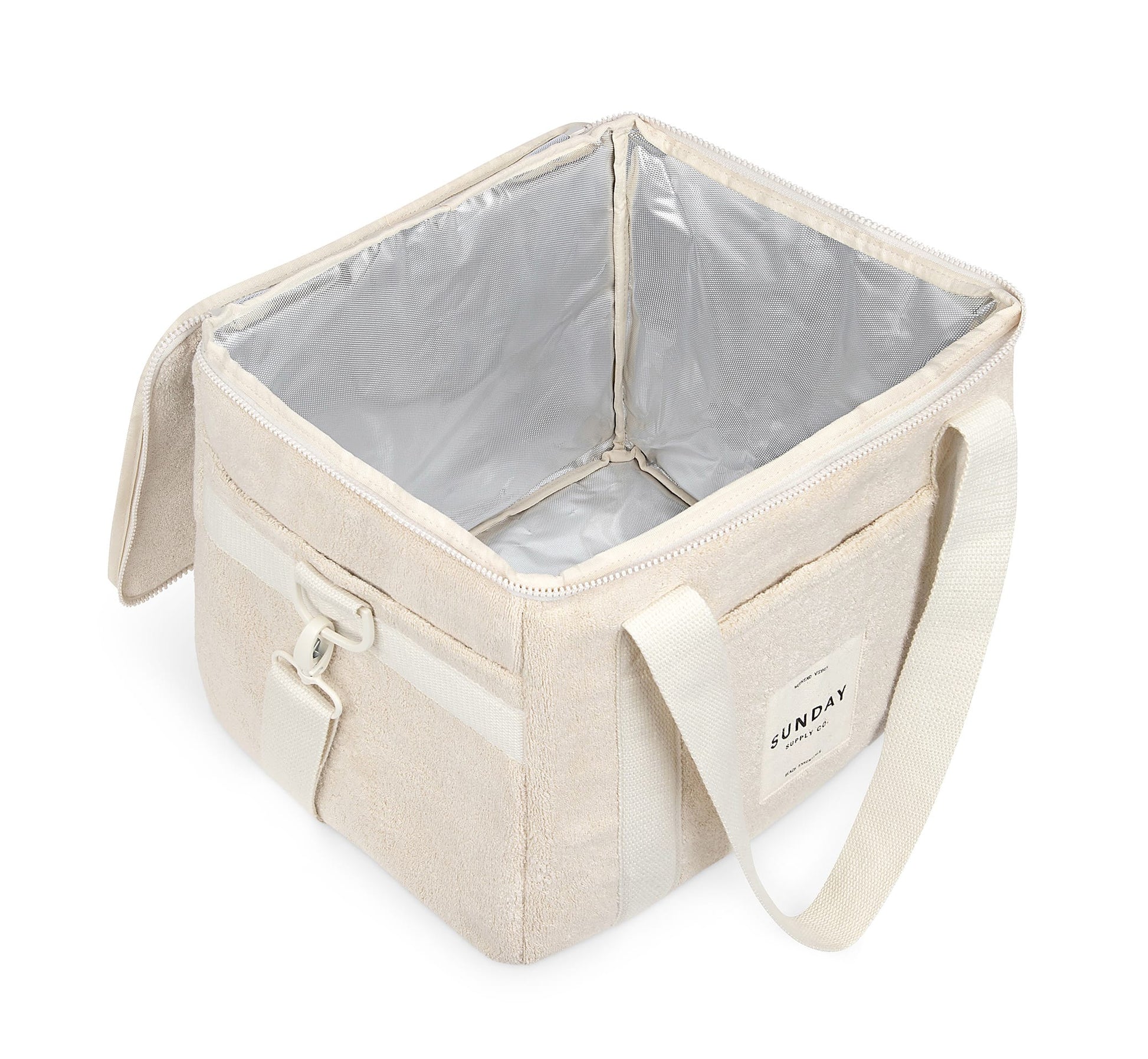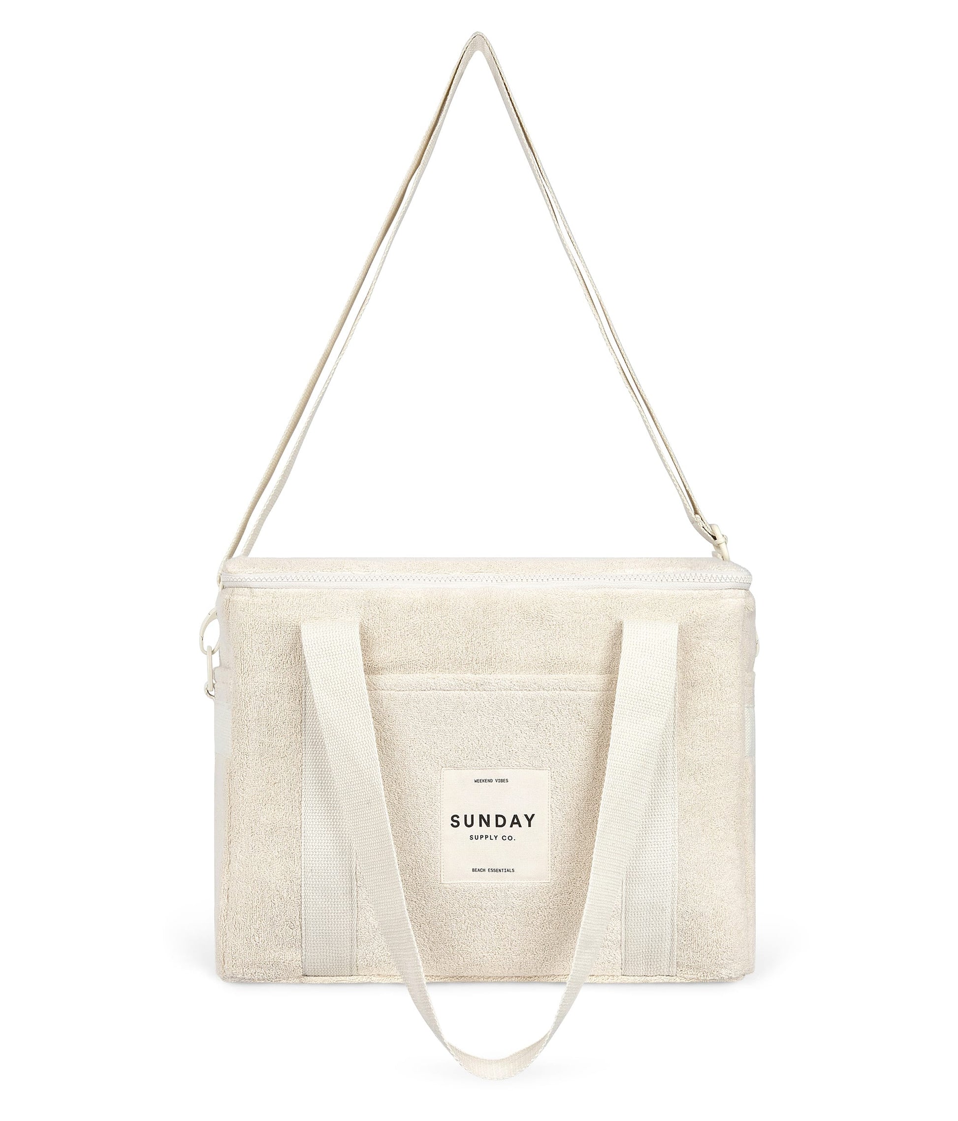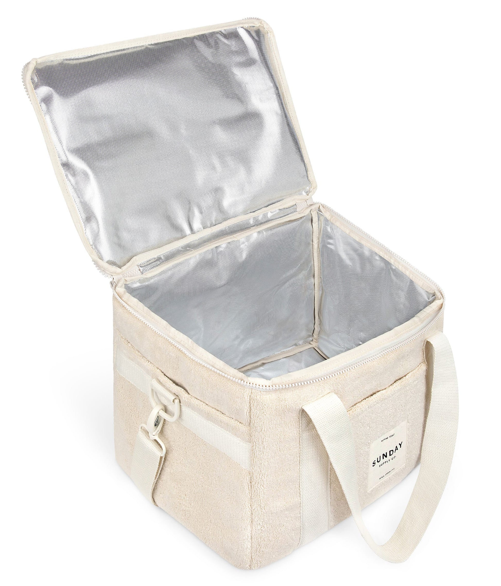 Our take on the Australian “Esky”, the Cooler Bag is made from our signature 100% Terry Towelling outer, insulated lining and zipped with YKK zip hardware.  Designed to fit all your essentials the Cooler Bag has two thick canvas handles, an extendable over the shoulder strap and three external pockets, giving you more room and comfort to carry a days-trip worth of supplies.