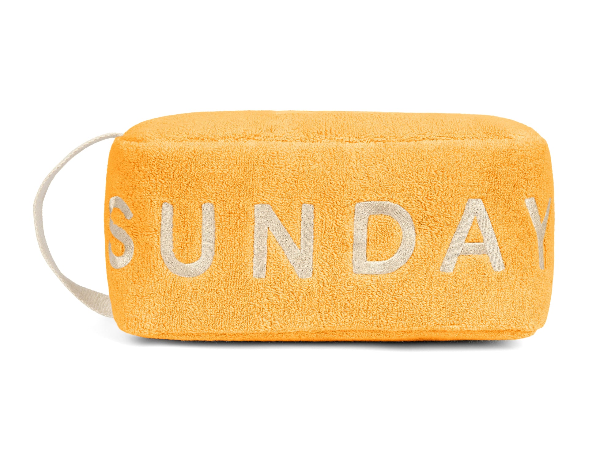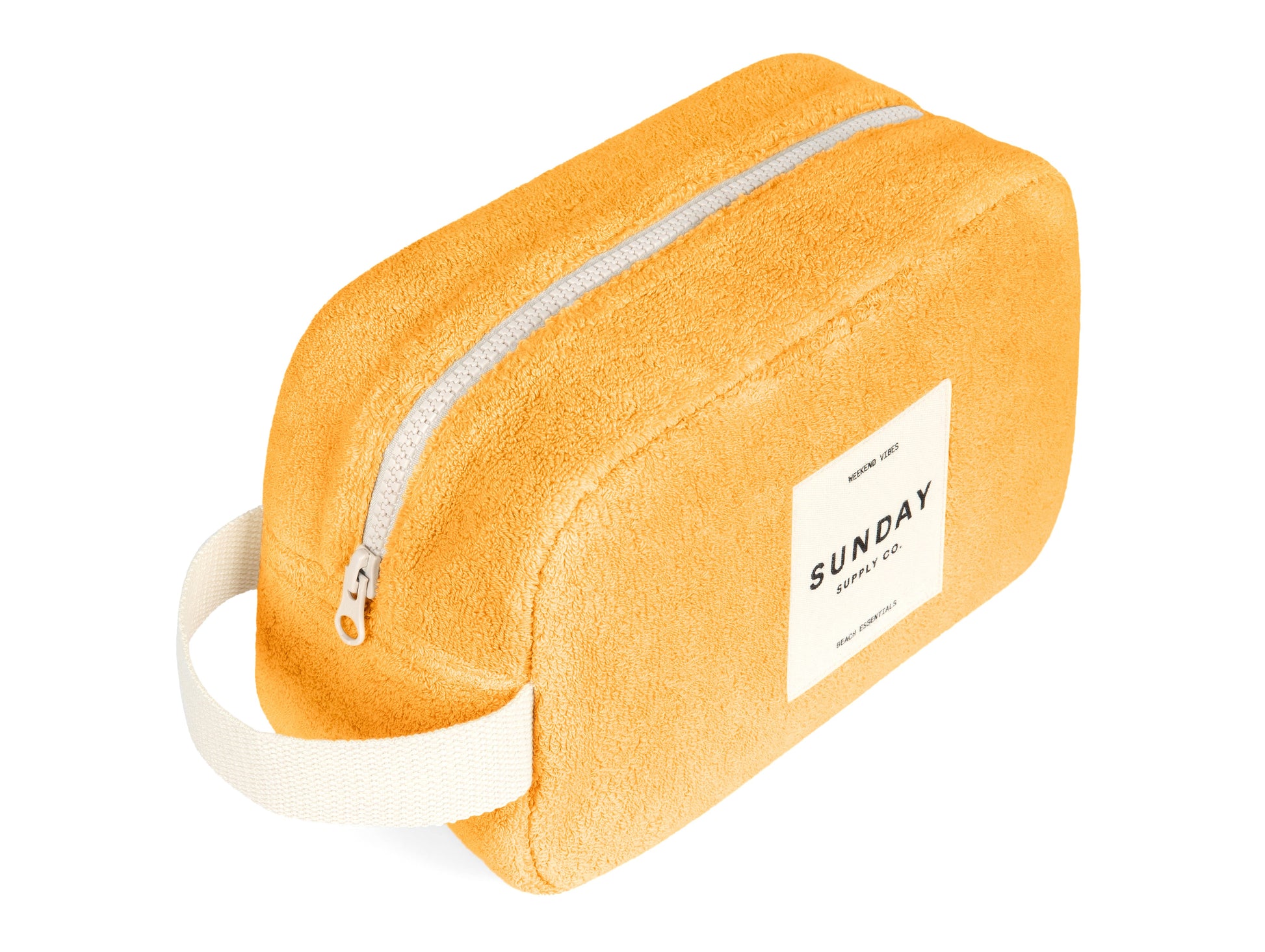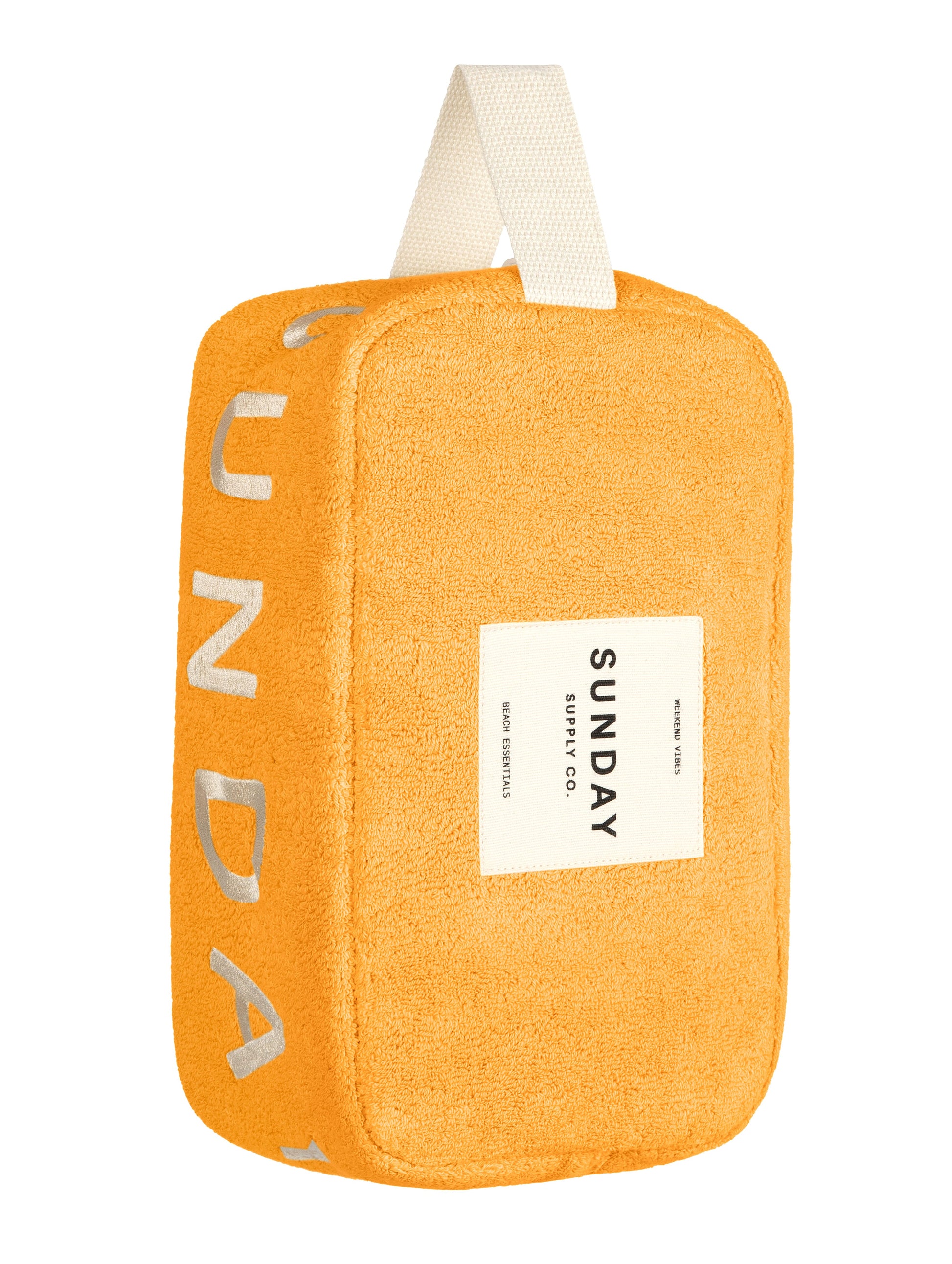 Featuring a 100% terry towelling outer, lined with heavy duty cotton canvas and zipped with premium YKK zip hardware. A thick canvas handle is attached to a single side of the pouch and our signature ‘SUNDAY’ patch logo is featured on the front with our embroidery on the bottom.