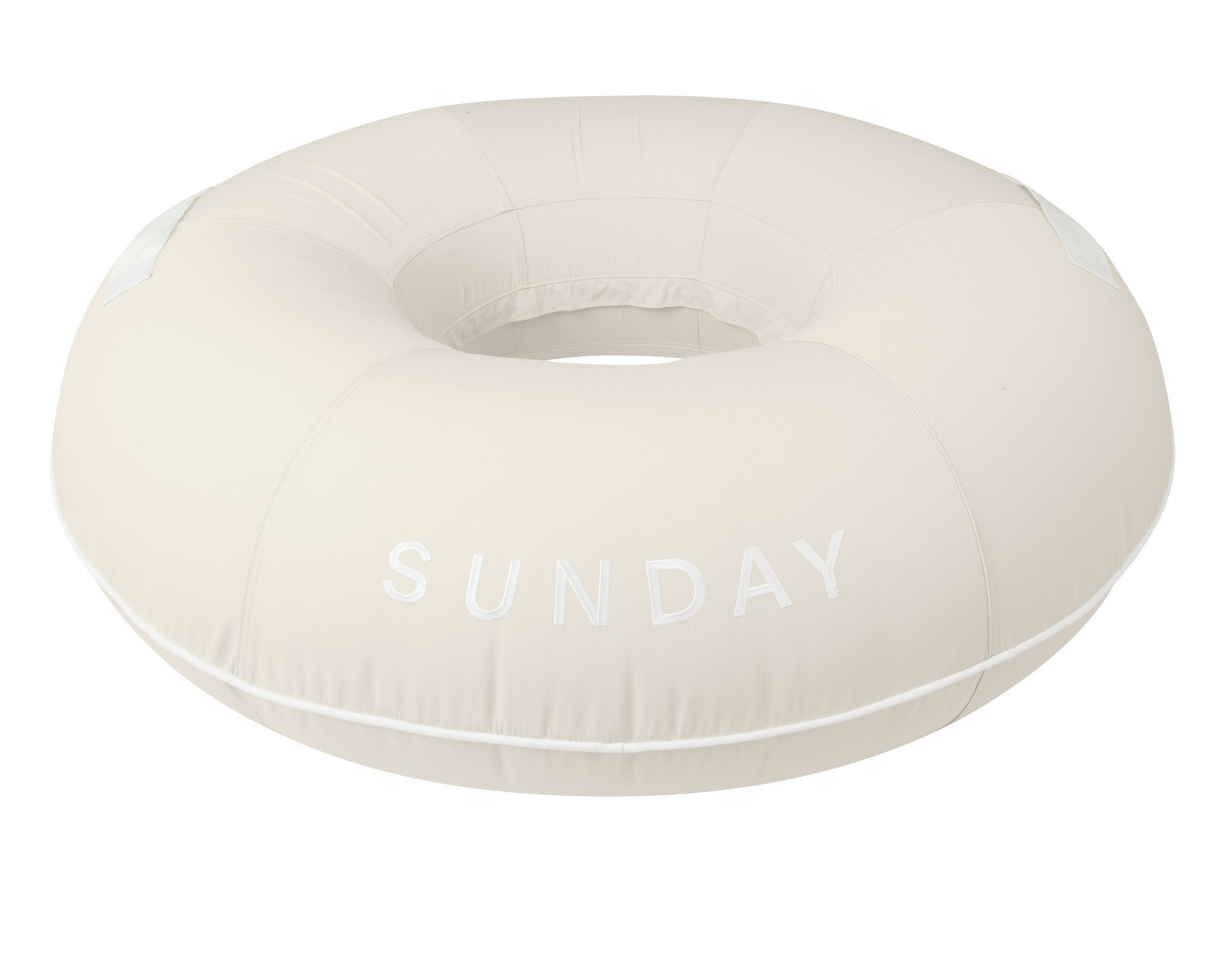 Crafted from durable, puncture-resistant PVC and wrapped in our signature premium Olefin outdoor fabric, this floating ring is both water-friendly and UV-protected, ensuring lasting quality through sunlight, sunscreen, and endless swims. Soft to the touch and refined in design, it features a premium SUNDAY embroidery for a subtle, elevated finish.