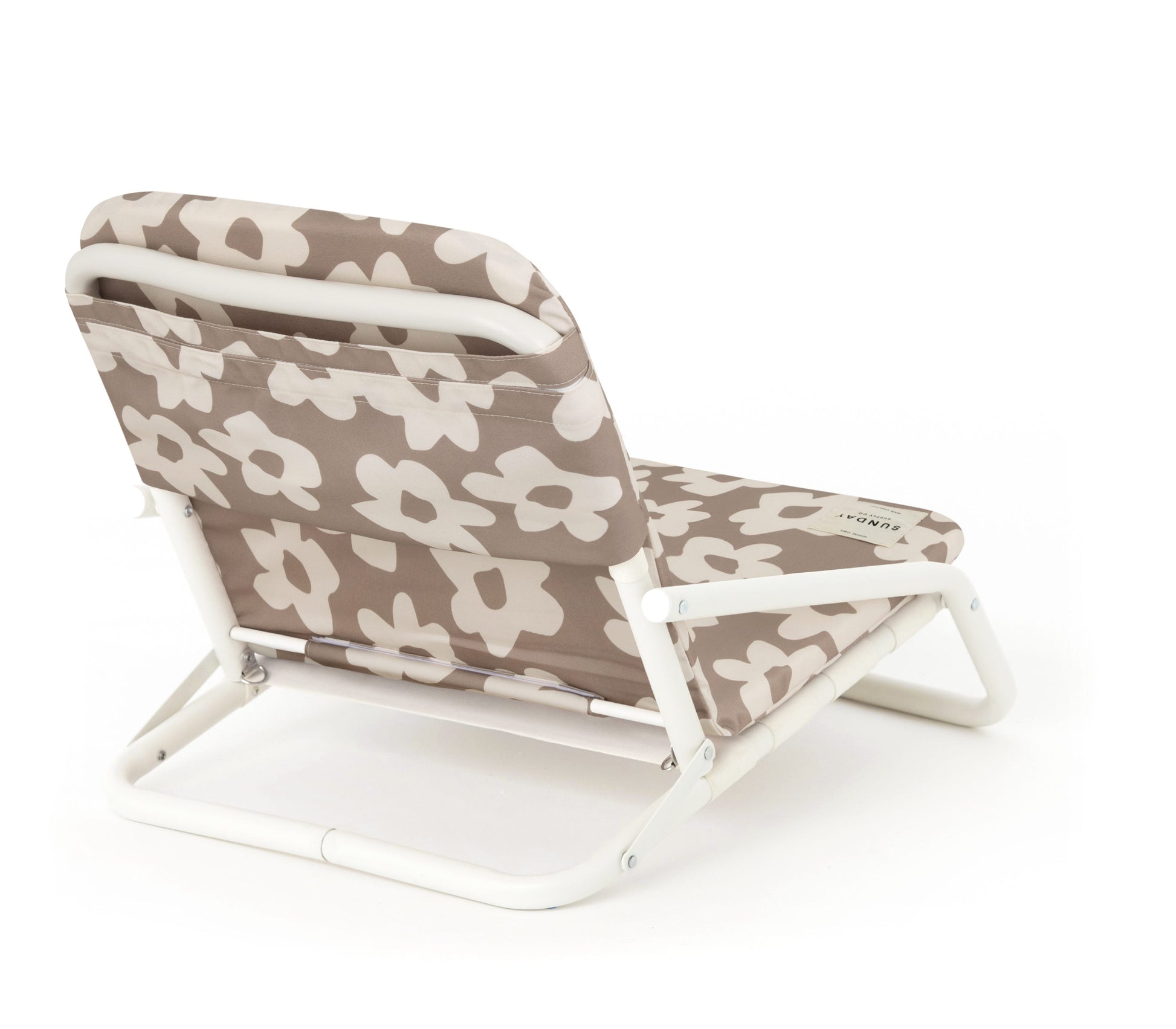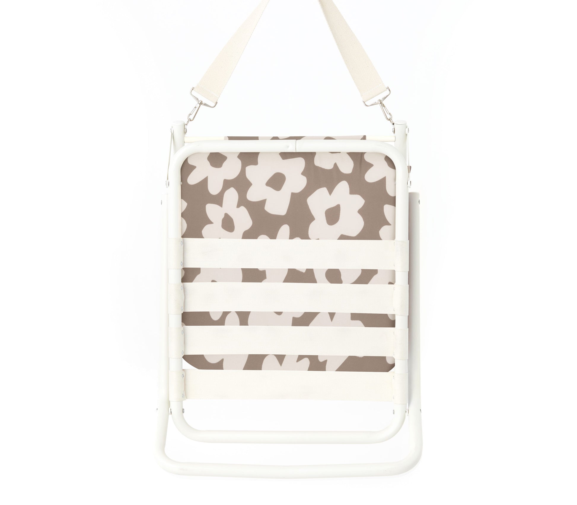 Designed for comfort and style, this lightweight beach chair features a custom-designed, premium cushion slip in our Husk Flower signature print, removable carry strap and convenient storage pocket.