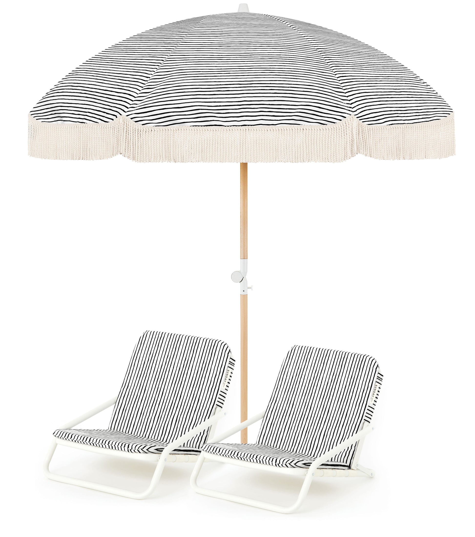 The perfect beach setup with our matching Beach Umbrella with Beach Chairs. Make the most of your days at the beach in comfort and style with the essentials beach bundle. Start here and add a towel, bag and other Summer essentials to complete your setup and save.