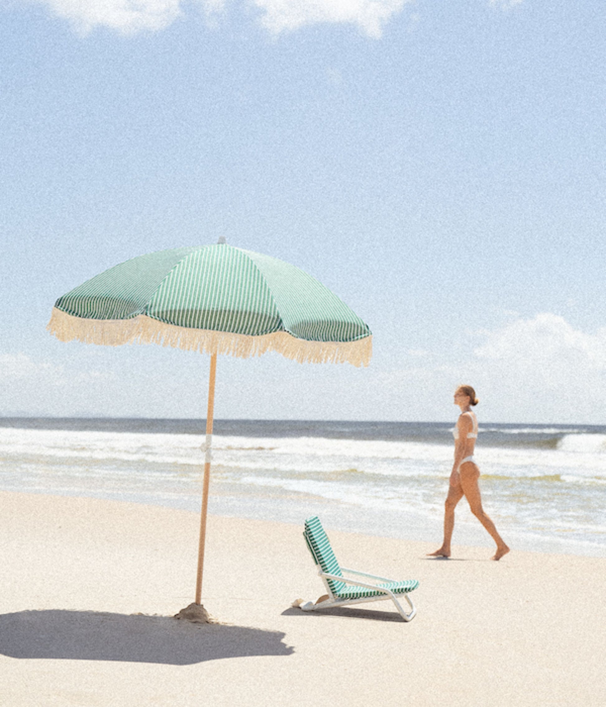 Our timeless beach umbrella with premium finishes and UPF50+ fabric. Designed for long sunny days in our Mineral signature print. Made with RPET (recycled) Premium Fabric.