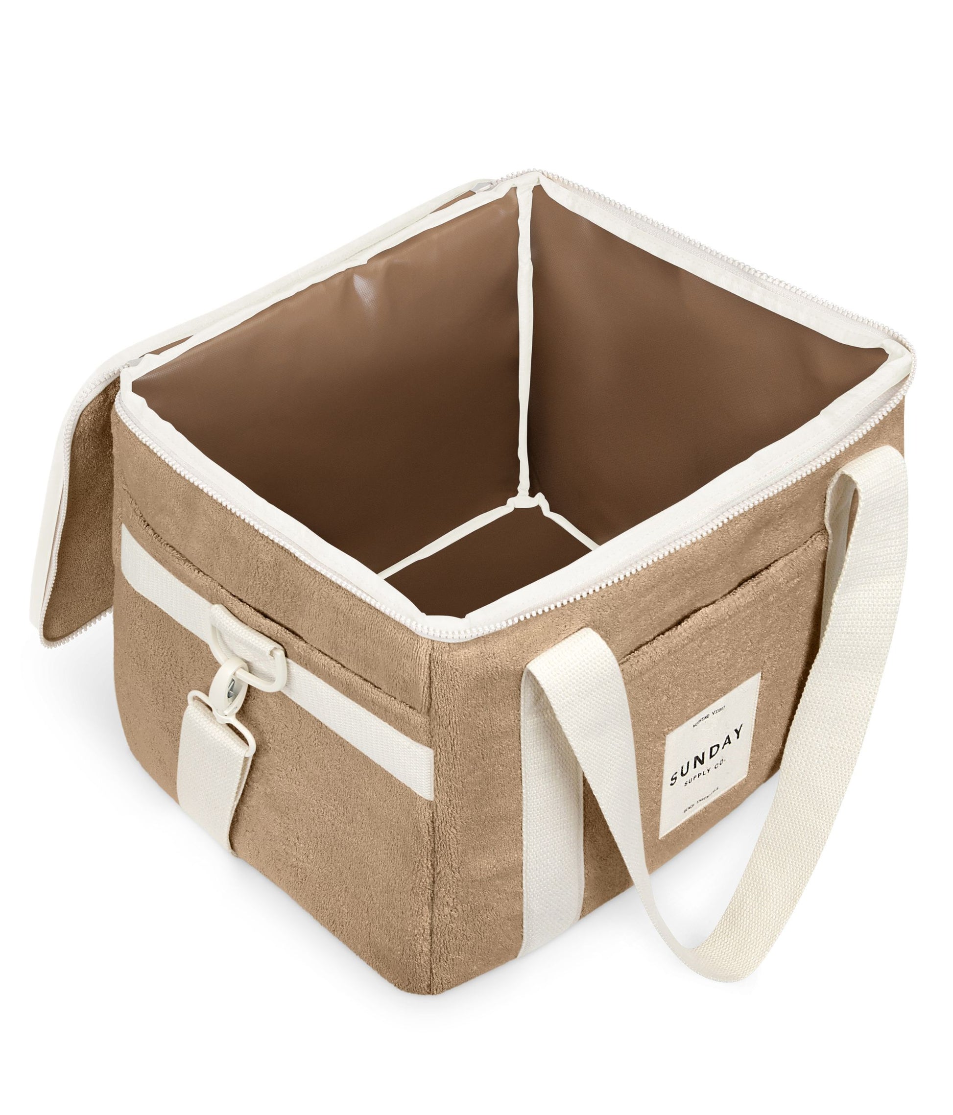 Our take on the Australian “Esky”, the Cooler Bag is made from our signature 100% Terry Towelling outer, insulated lining and zipped with YKK zip hardware.   Designed to fit all your essentials the Cooler Bag has two thick canvas handles, an extendable over the shoulder strap and three external pockets, giving you more room and comfort to carry a days-trip worth of supplies.