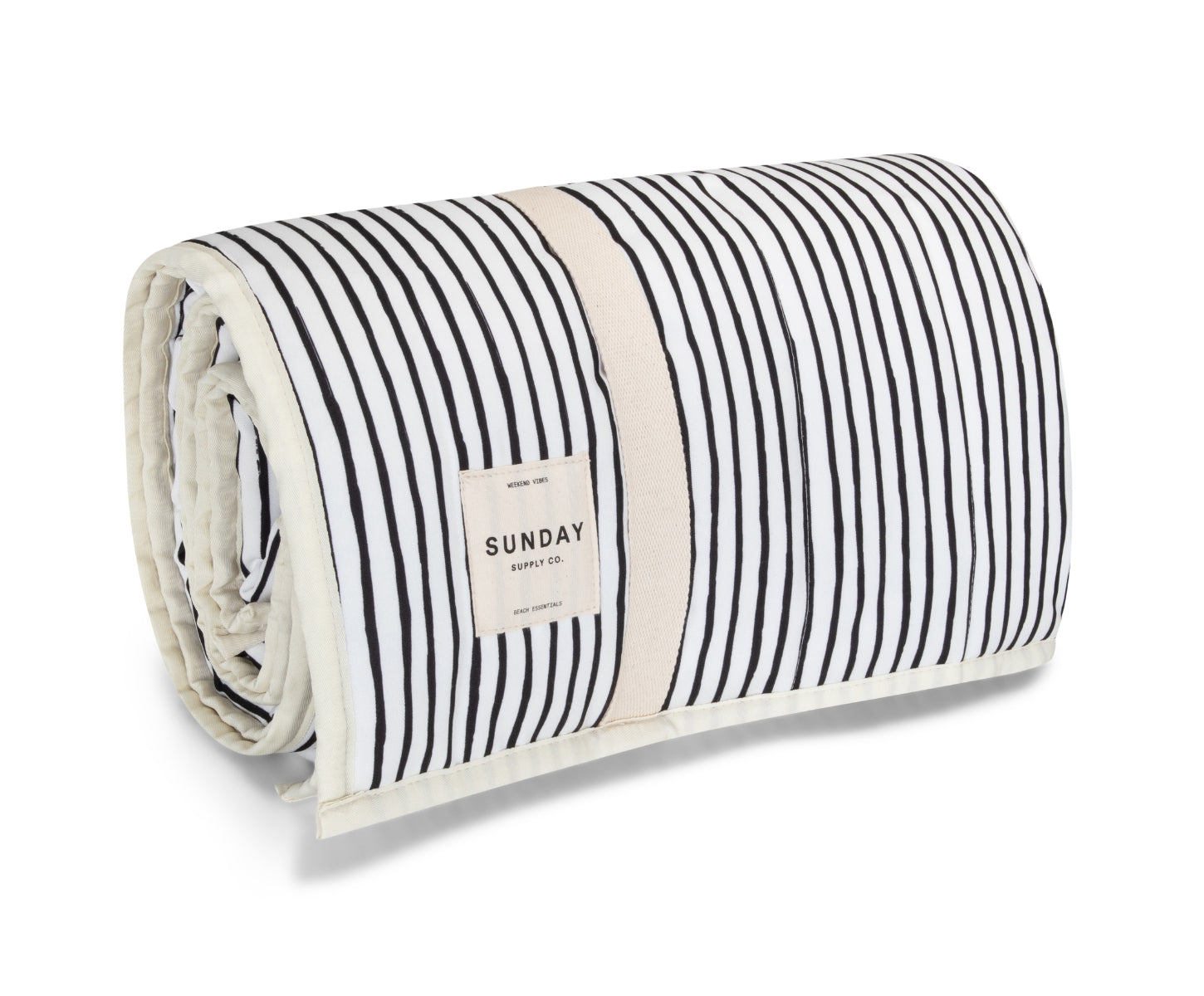 The Natural Instinct Beach Mat – A simple, unique take on the classic stripe, tailored for the modern beachgoer. A classy, thin, black/charcoal hand-drawn line makes for a subtle texture up close and from a distance. Slow down, set up from the shoreline and take in the sea breeze.